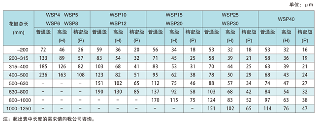 本滚珠花键(轴)的加工精度符合JIS B1193标准。分为三个等级——普通级(无标记),高级(H)和精密级(P)。精度等级包含在型号中,表中还包括轴端加工的精度等级情况以及其他特殊要求的精度查询。
