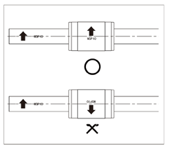 在向花键螺母内安装花键轴时,为防止螺母内滚珠脱落,请先确认轴上的滚珠槽、螺母内的滚珠以及螺母上的密封导向等的位置正确。